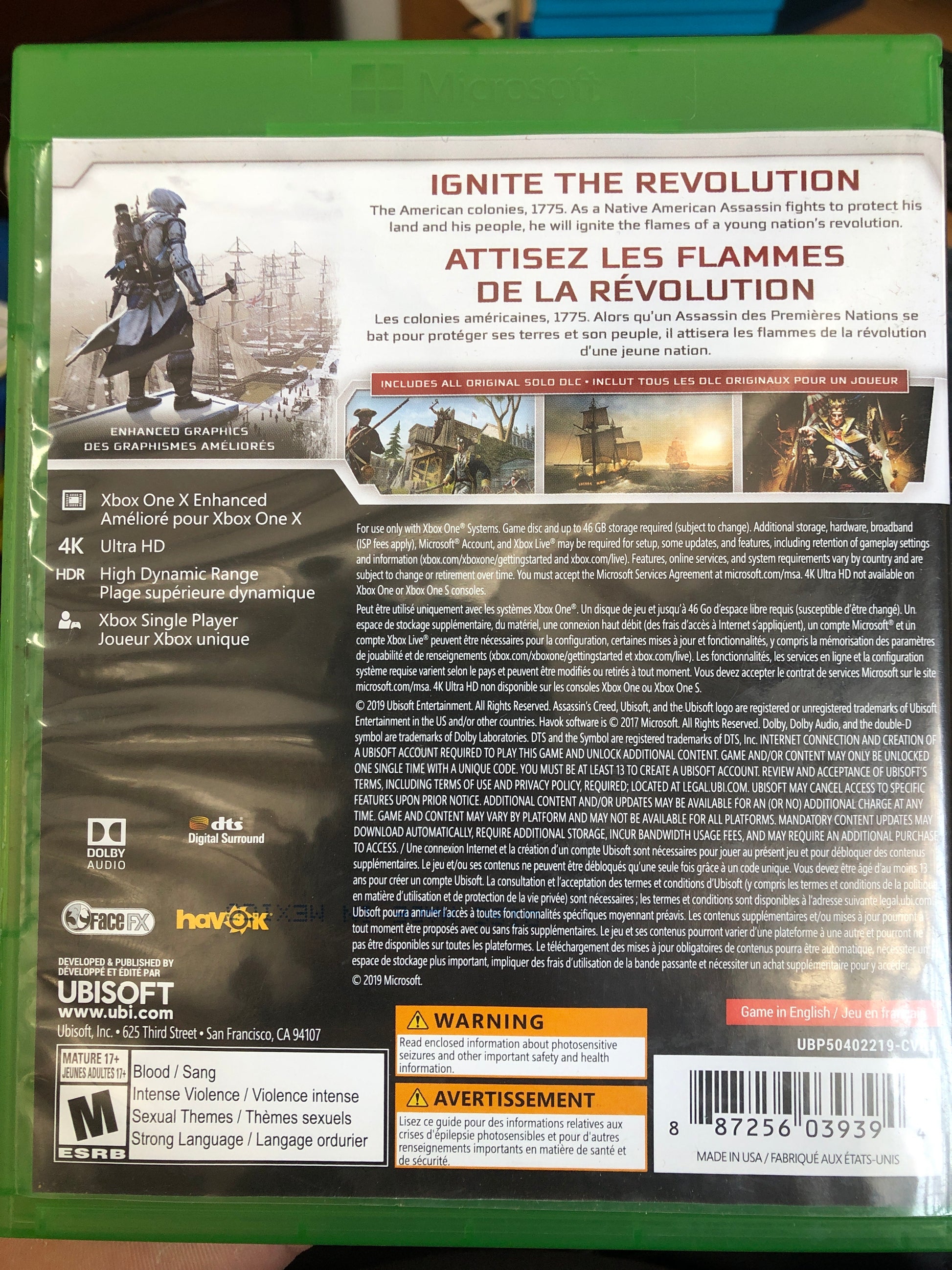 Fan the flames of revolution as your parkour through New York, Philadelphia, and Boston in this exciting remaster for the Xbox One. Includes all original DLC and Assassin's Creed Liberation.