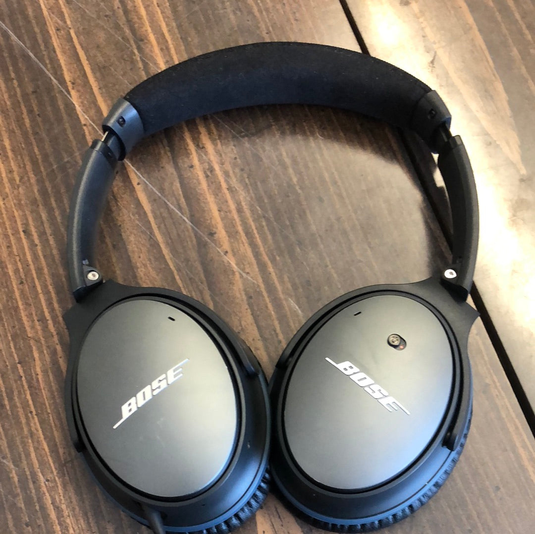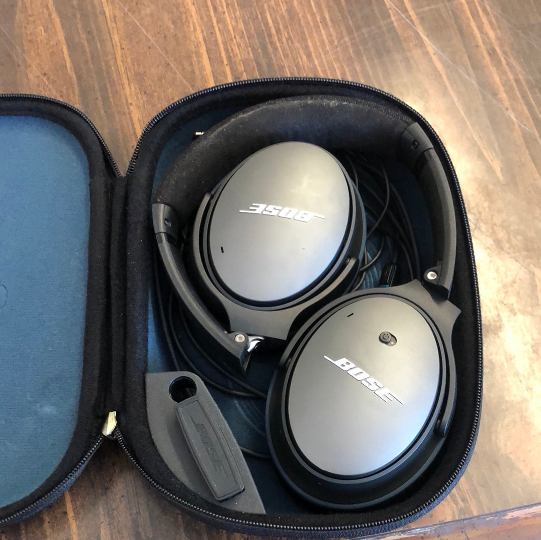 The Bose QuietComfort 25 headset included three types of connectors and a noise canceling option.