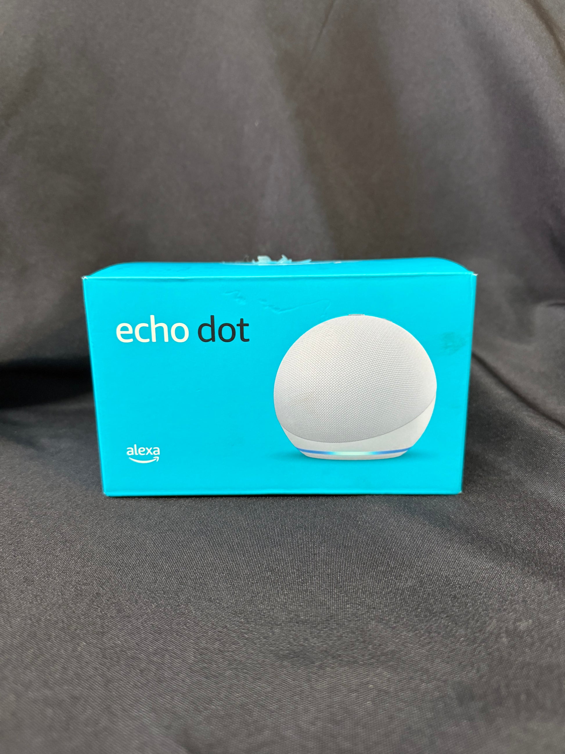 Compact Amazon Echo Dot (4th Gen) smart speaker in Glacier White with Alexa voice control, crisp audio, and smart home integration. Perfect for music, alarms, and hands-free assistance. Comes in original box.