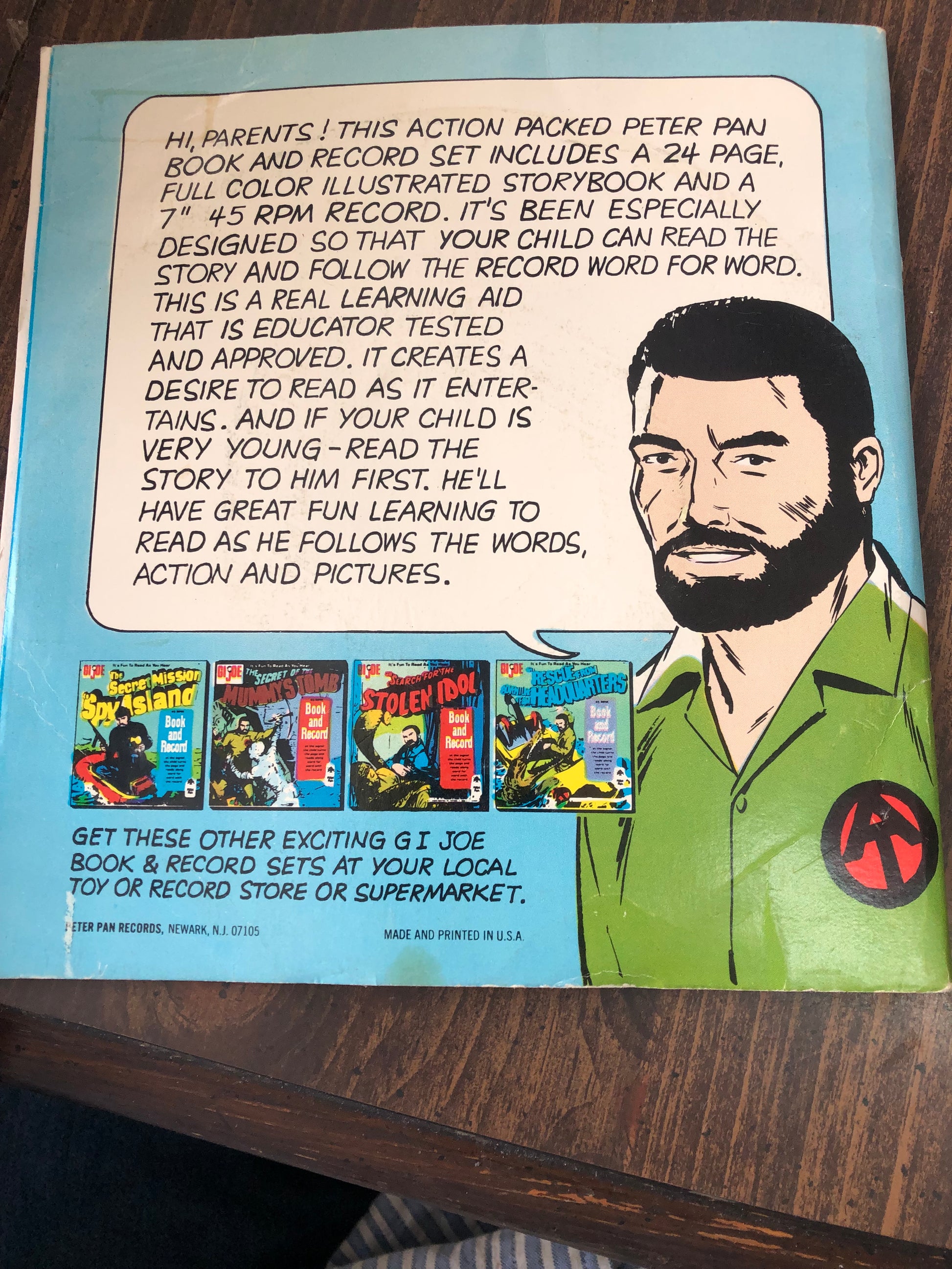 Listen and read along with this vintage GI Joe story and album! Includes: book and original 45 record.