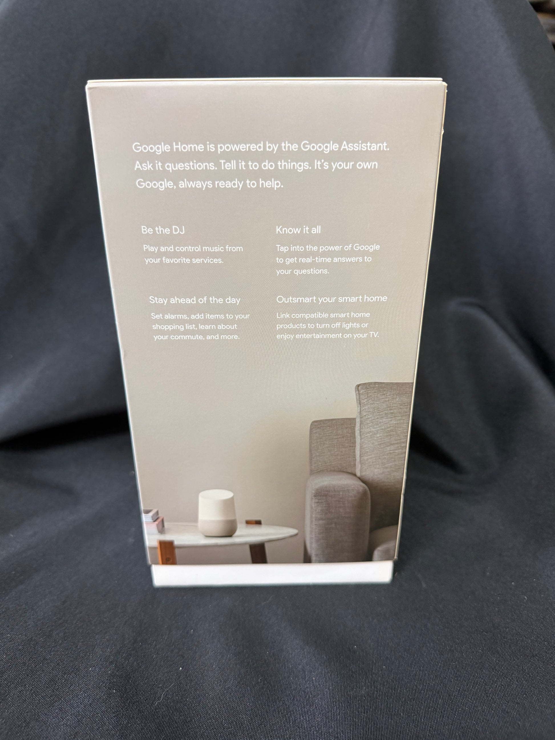 Smart voice‑controlled speaker featuring Google Assistant for hands‑free help — play music, get answers, control smart home devices, or manage tasks with your voice. Sleek design and easy setup make it a versatile addition to any home or office. Comes in original box.