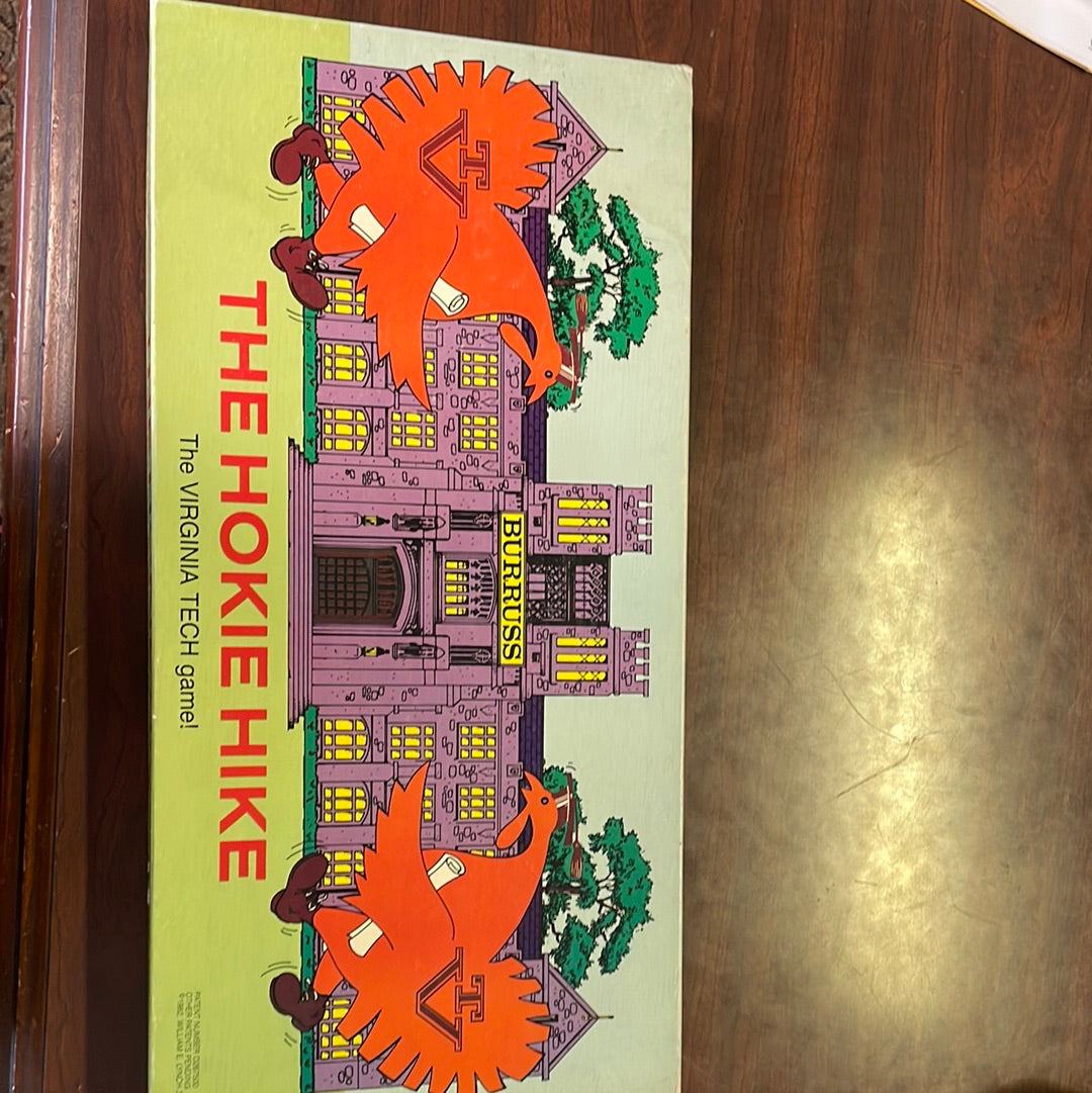 Vintage from 1982, Hokie Hike Board Game, ages 10 to adult, 2 to 8 players, based on Virginia Tech's Campus! In original packaging, all pieces included, boxes are lightly worn with age. Directions and all pieces included.