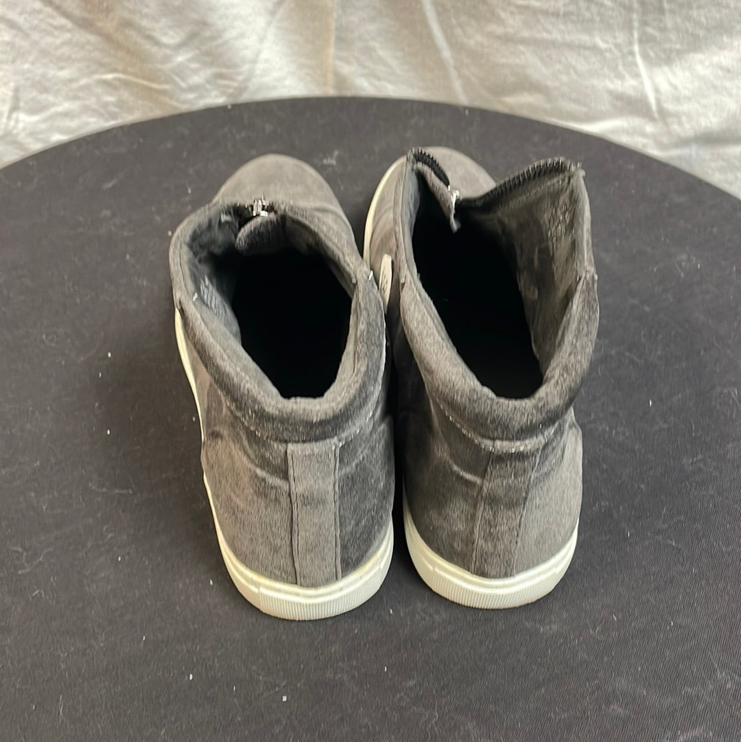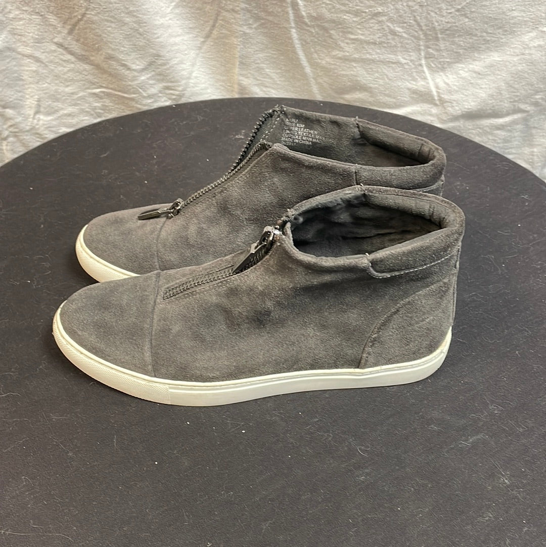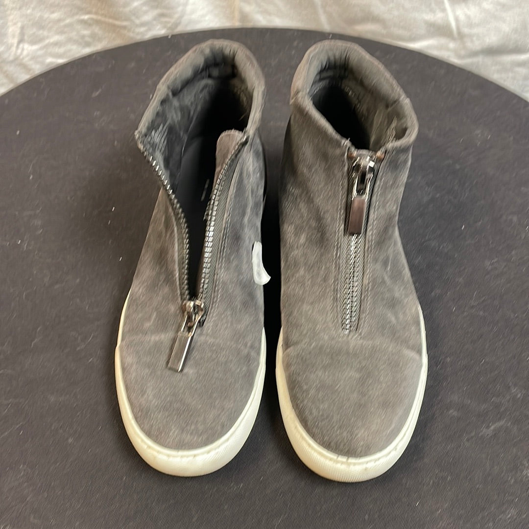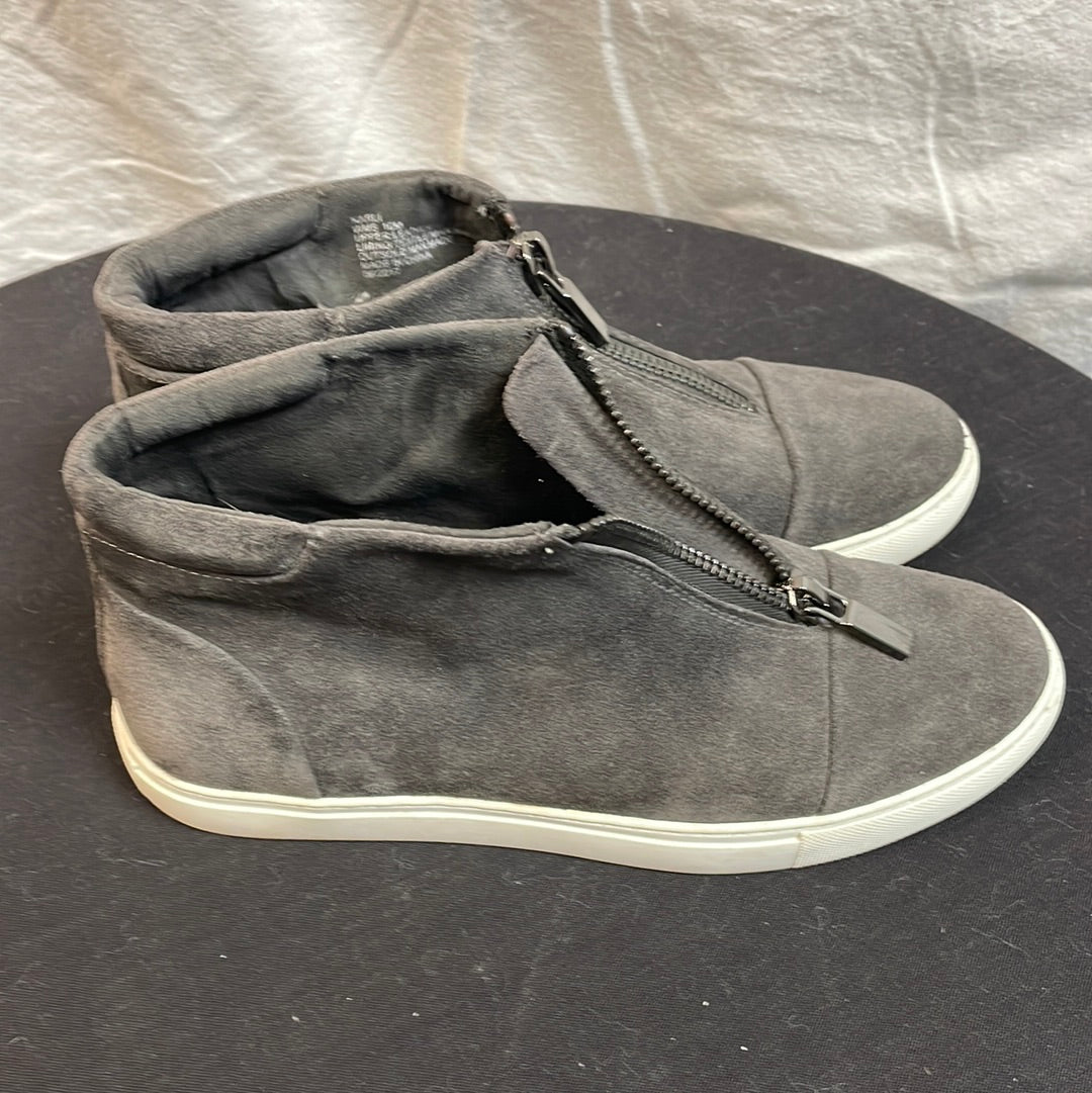 Karli Suede Zip High-Top Sneakers. Gray suede, Size 10M