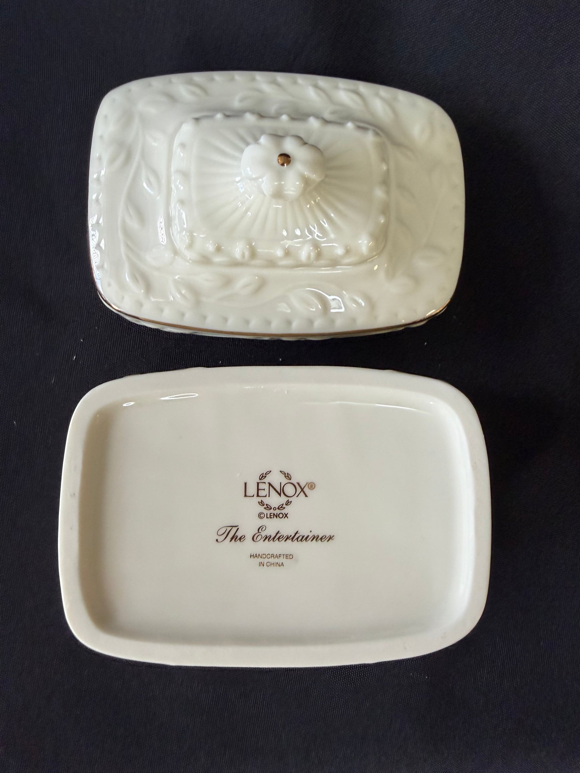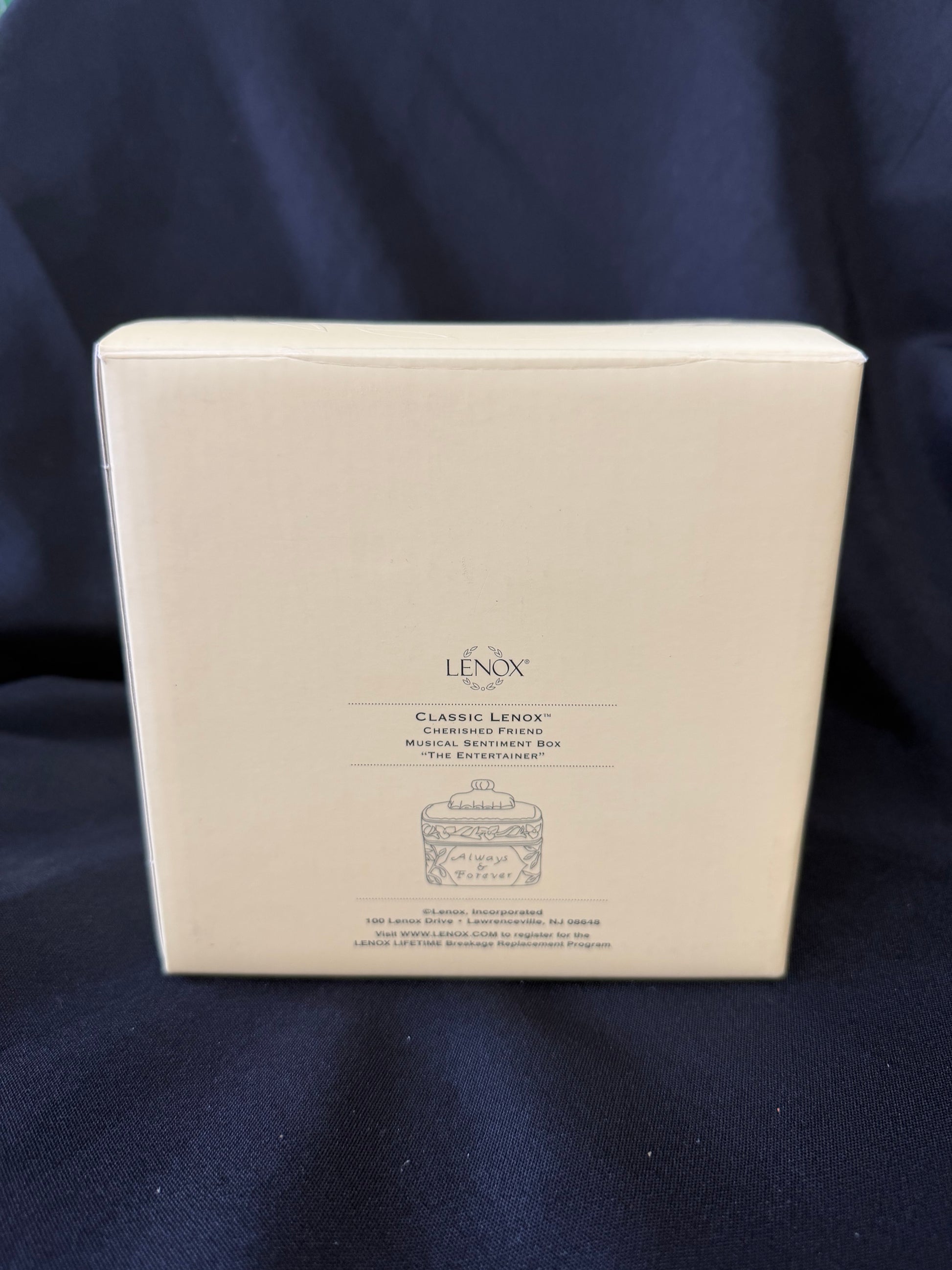 Elegant Lenox “Cherished Friend” musical trinket box featuring fine porcelain craftsmanship, gold accents, and a heartfelt friendship motif. Plays a sweet melody when wound—perfect as a gift, keepsake, or collectible display piece. Comes in original box and protective packaging.