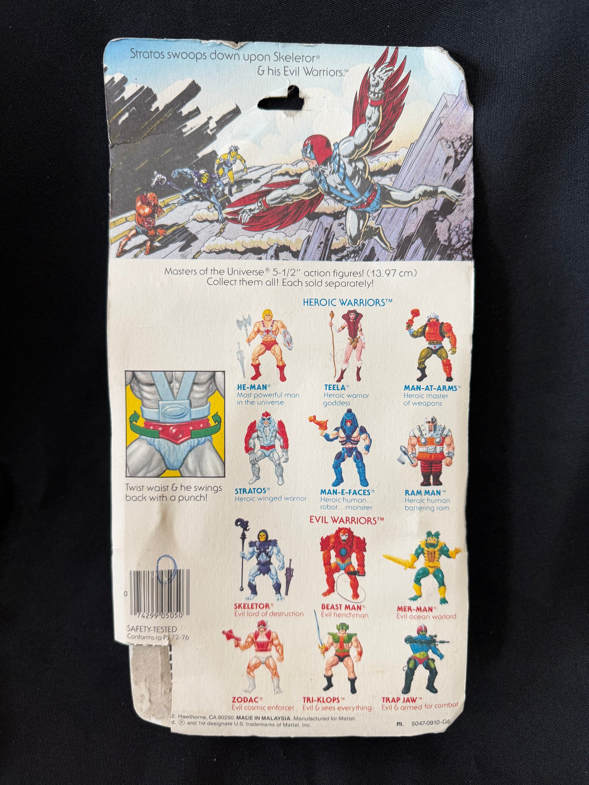 Classic action figure of Stratos, the avian-winged hero from Masters of the Universe. A fan-favorite among collectors, this figure captures Stratos’ original design — winged harness, rocket-pack, and bird-people heritage — and brings nostalgic ’80s fantasy to life.
