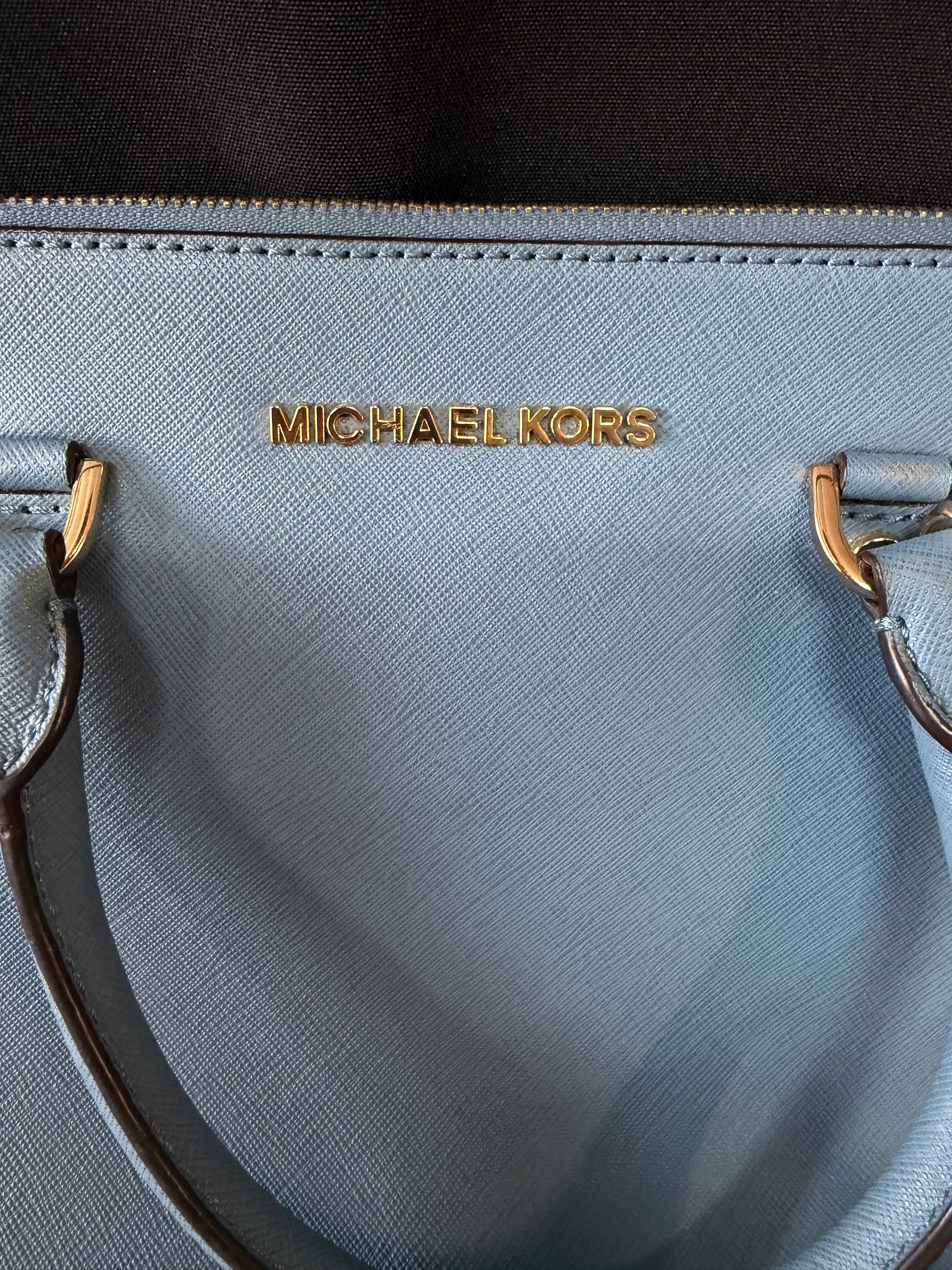 Michael Kors Cindy Large Dome Leather Satchel – Pale Blue
