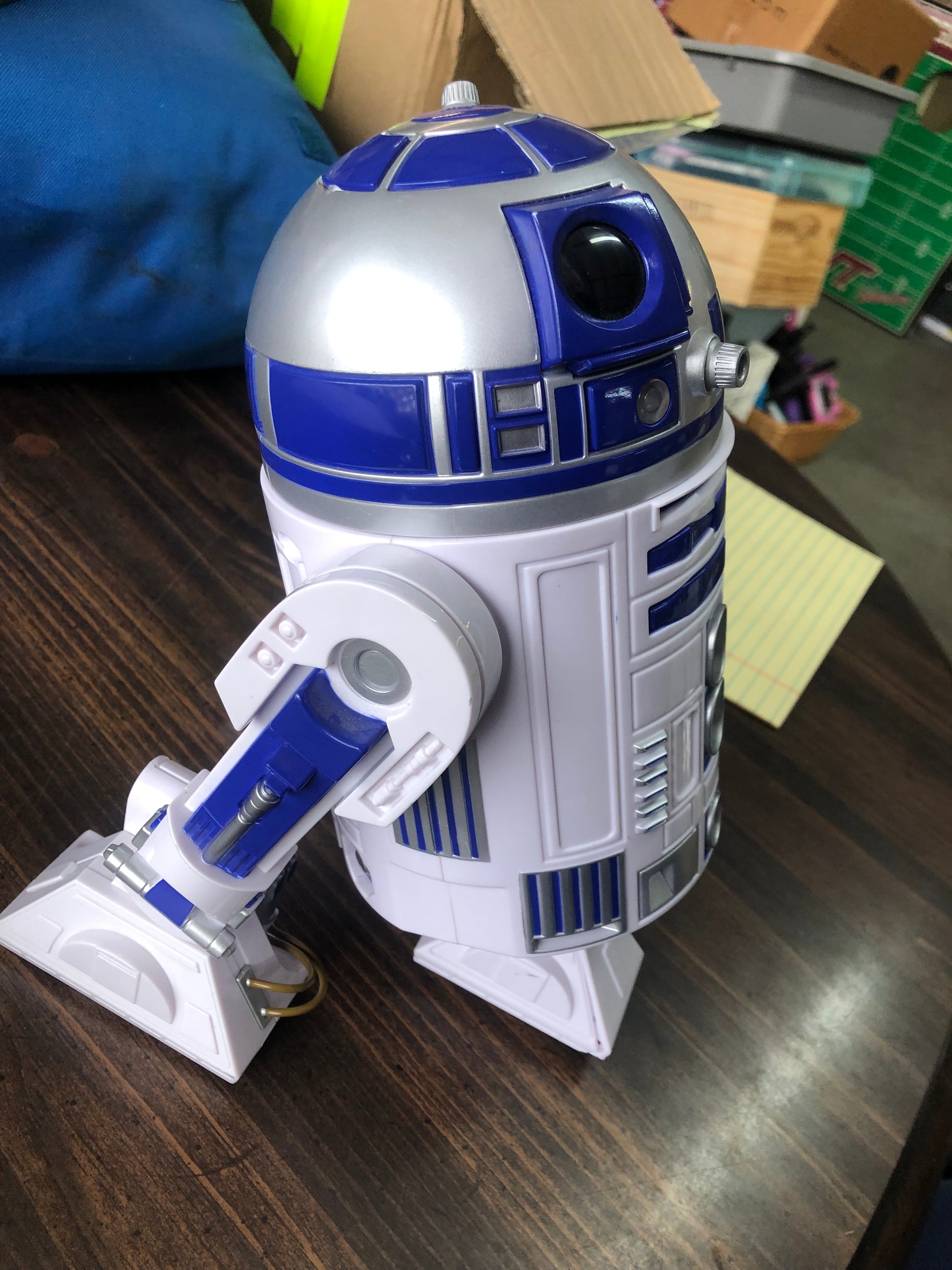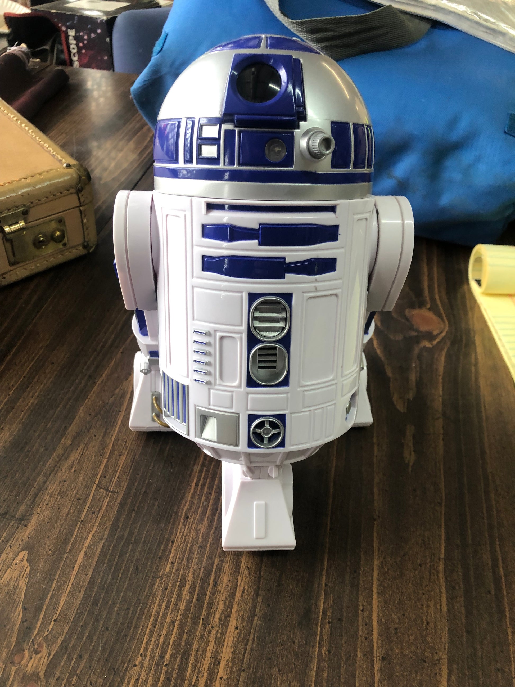 A 10.5" tall, battery powered version of everyone's favorite astromech droid! Has two modes of operation during which R2 will screech and roll around (just like the movies!)