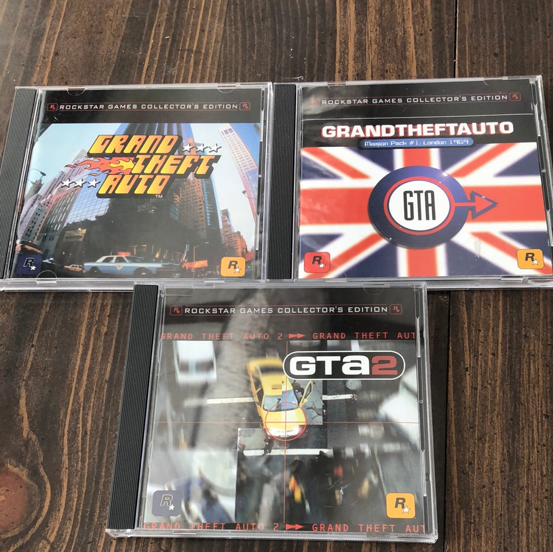 Set Includes: Grand Theft Auto 1, Grand Theft Auto Mission Pack #1: London 1969, and Grand Theft Auto 2. All games include case, game disc, and case inserts. All games are for PC.