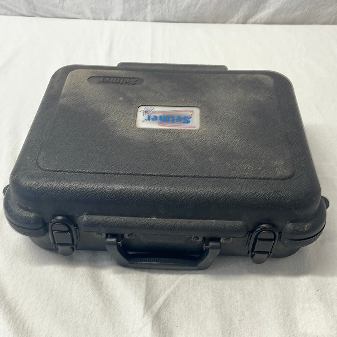 Selmer 1400 Series Student Wooden Clarinet. In a fitted hard shell case, includes extra reed, reed clamp, all pieces of clarinet, and cork grease. In good condition, the cork needs to be redone on a couple of pieces where it has dried out from age. Otherwise in great condition.