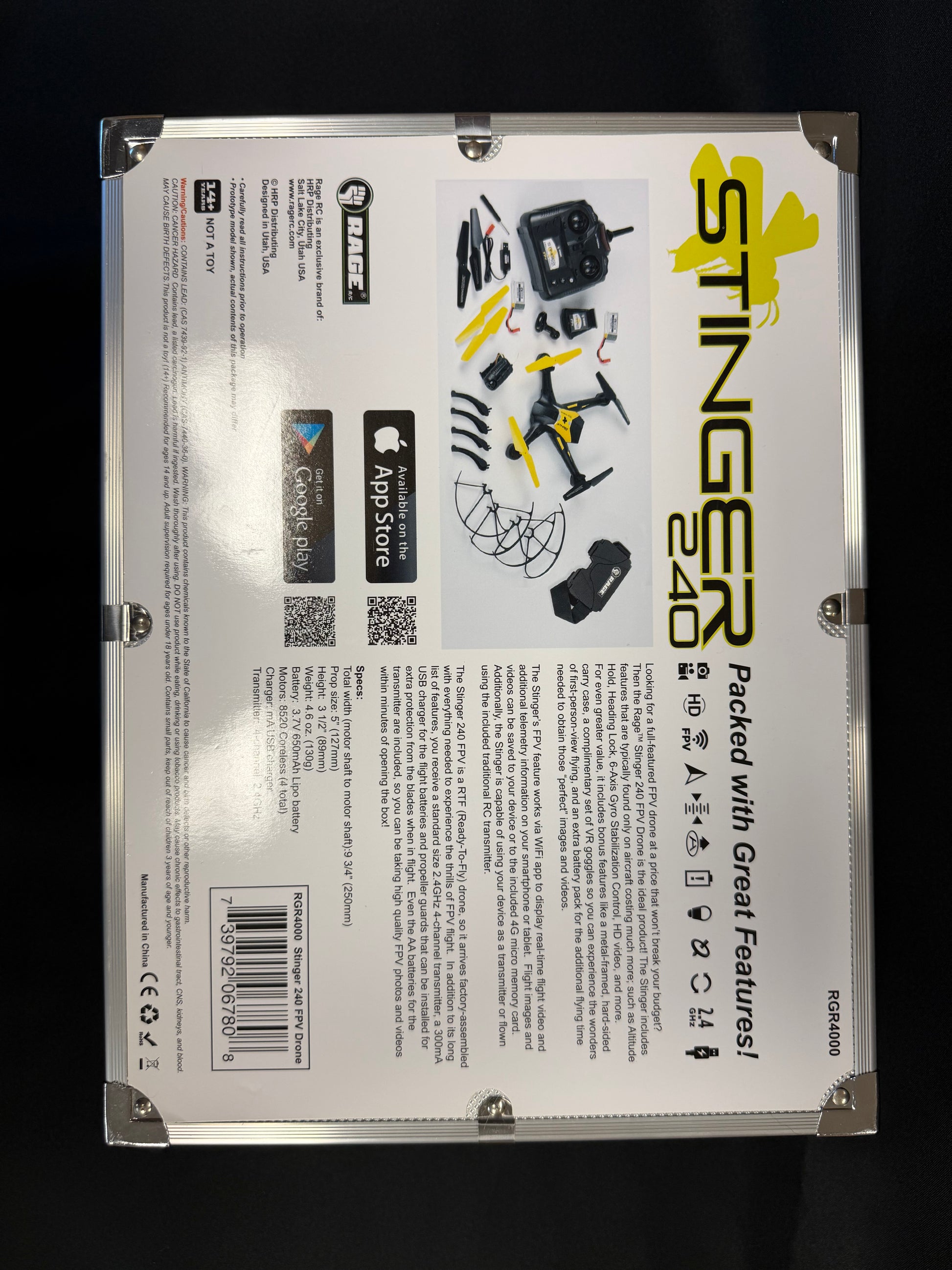 Stinger 240 Drone in original, unopened box comes equipped with the following: