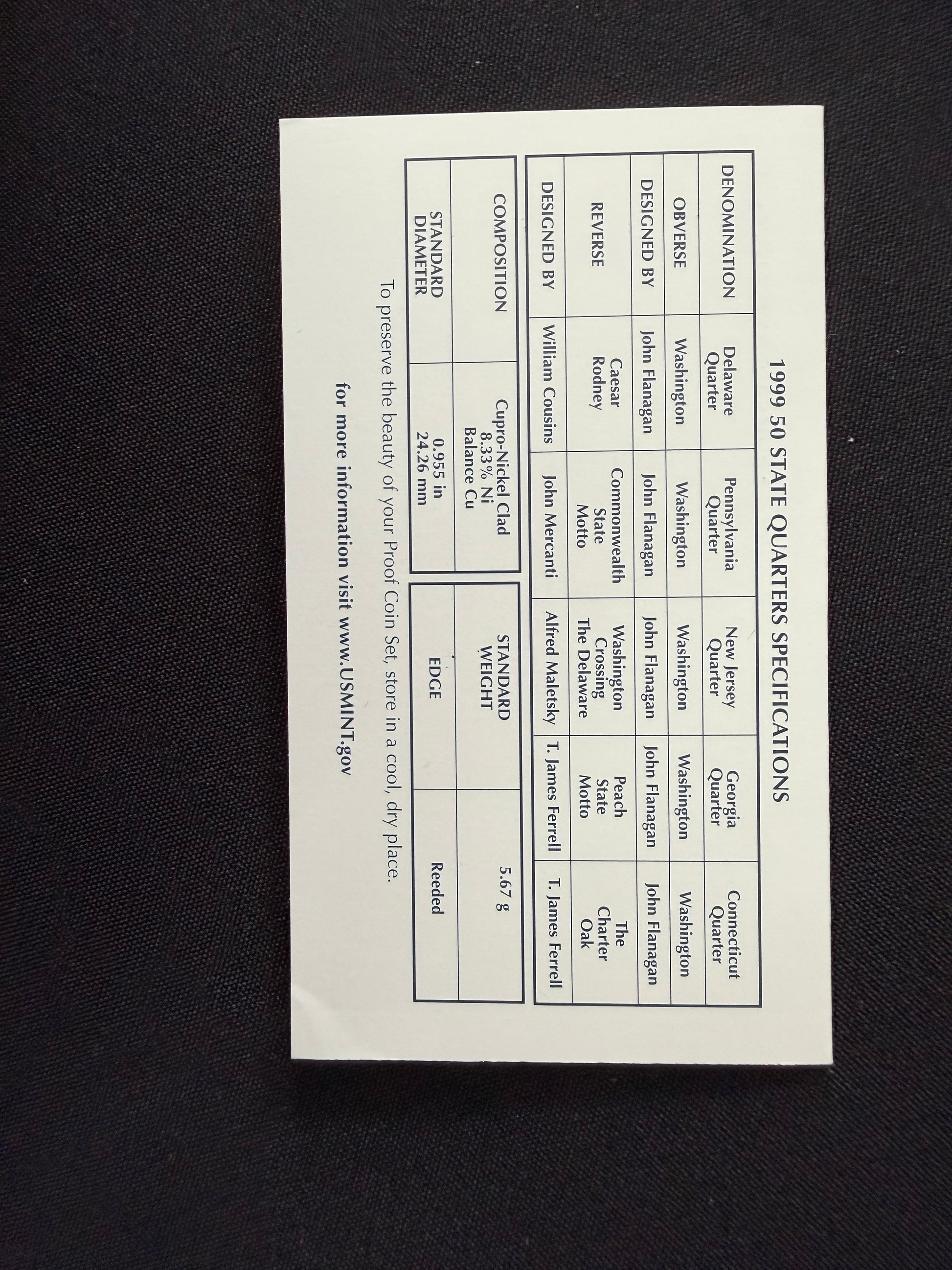 United States Mint 50 State Quarters Proof Set - 1999
