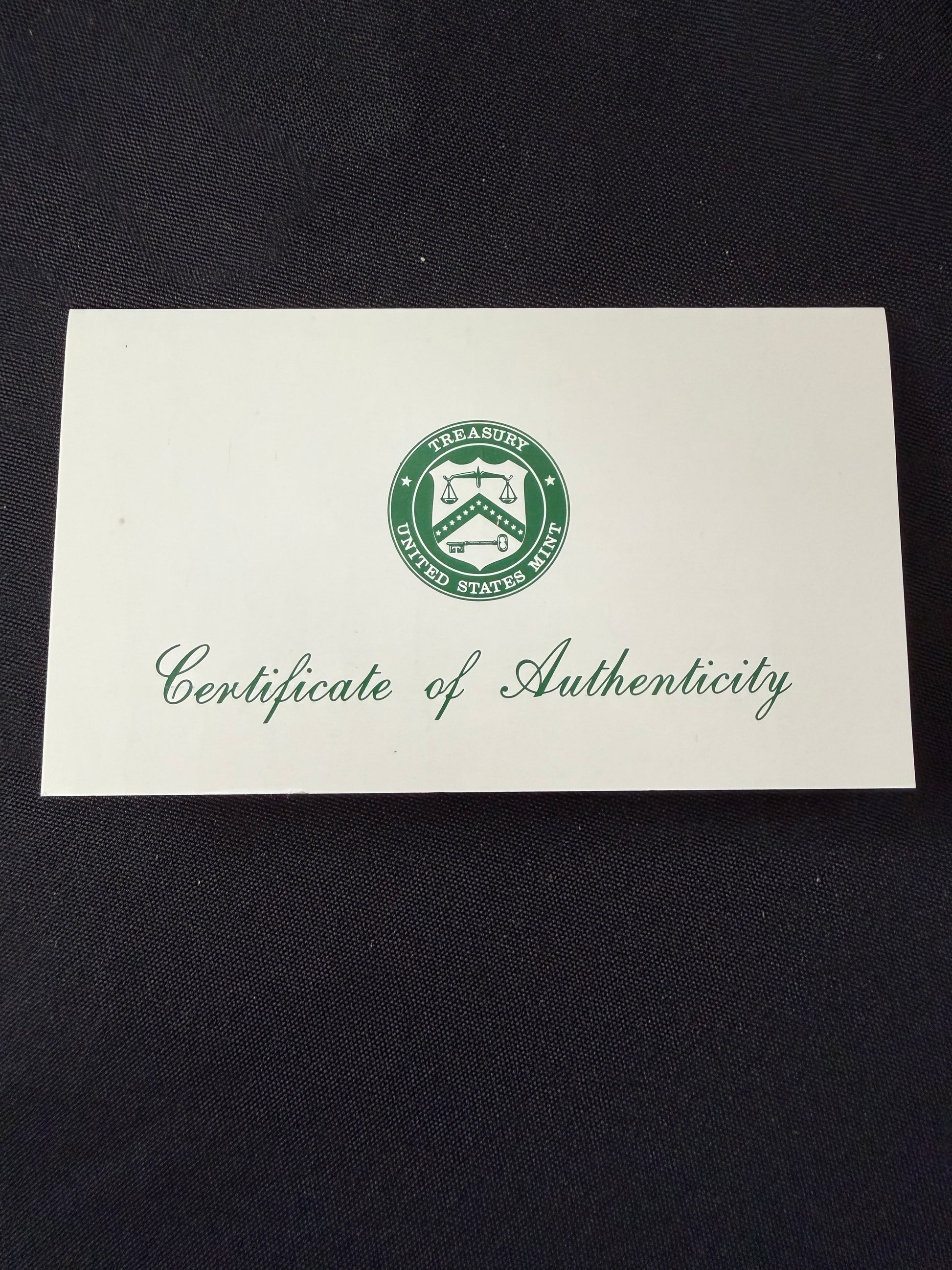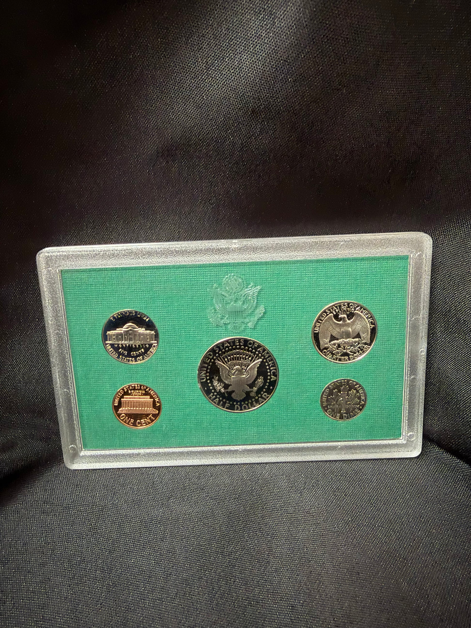 Original 1994 United States Mint Proof Coin Set: includes a Kennedy half dollar, Washington quarter, Roosevelt dime, Jefferson nickel, and Lincoln cent. The half dollar, quarter and dime are all copper-nickel clad. Comes with Certificate of Authenticity.