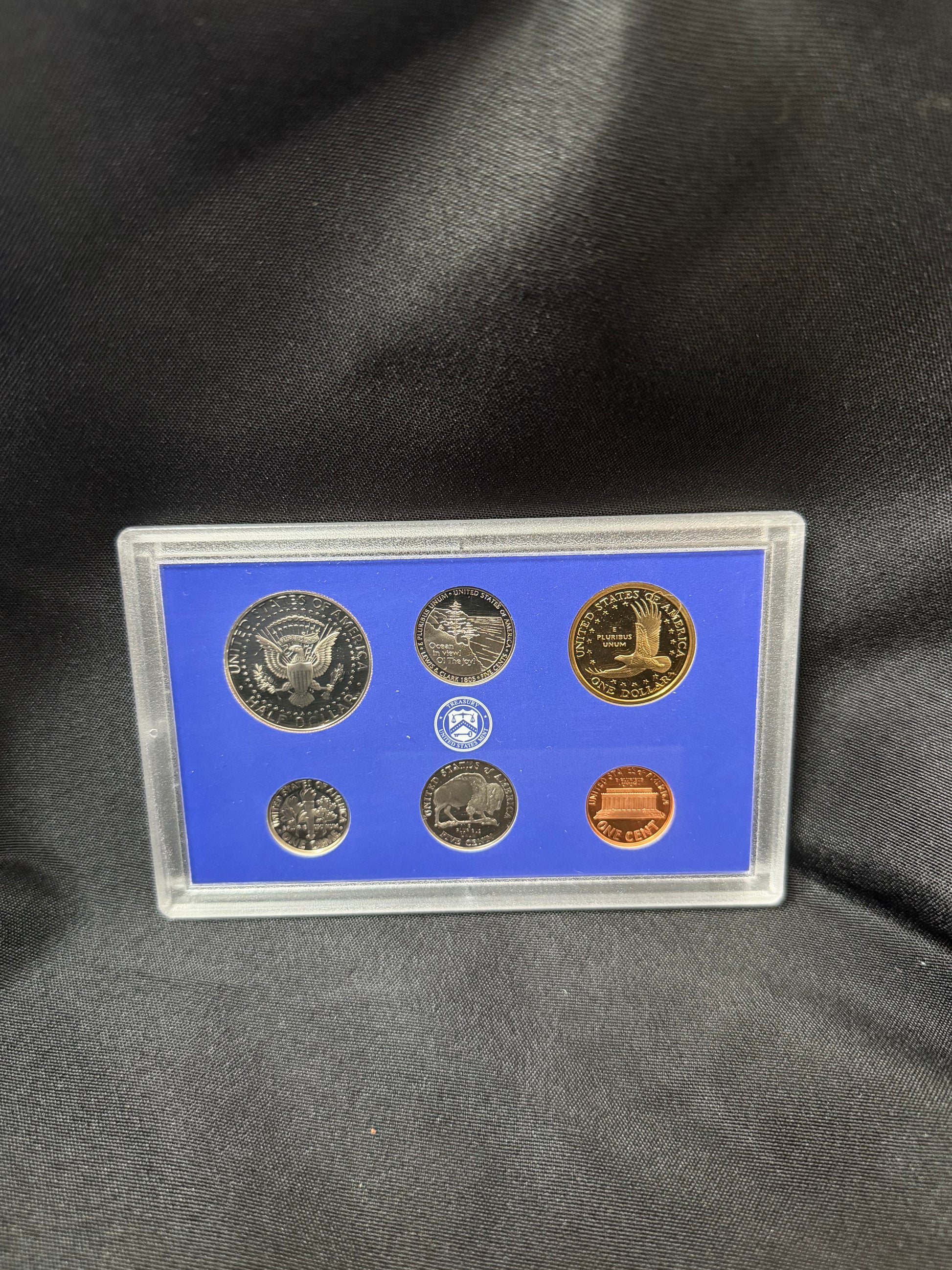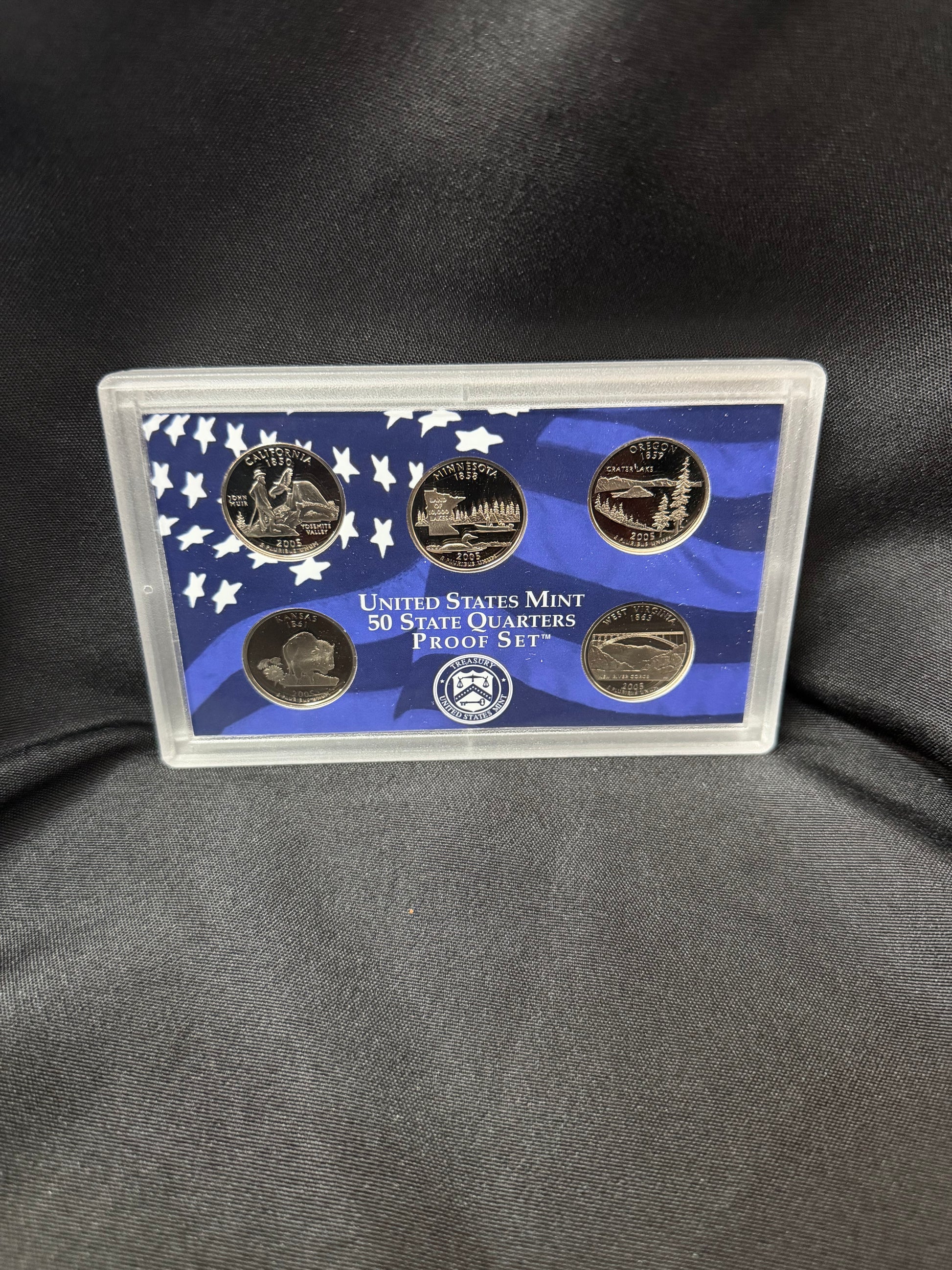 Comes with the original U.S. Mint packaging with the Certificate of Authenticity. This product also contains five statehood quarters: California, Minnesota, Oregon, Kansas, and West Virginia.