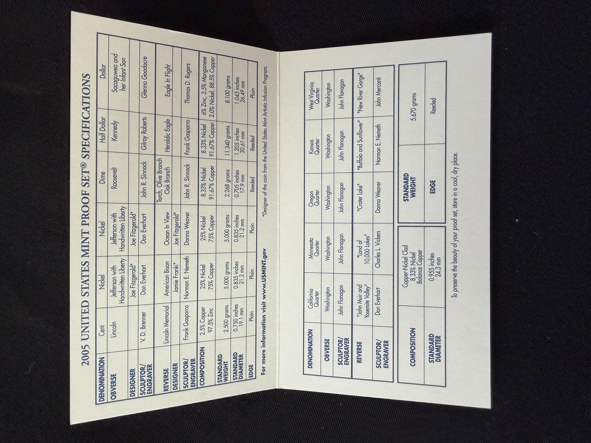 Official U.S. Mint 11 Proof set contains the following special coins from 2005: