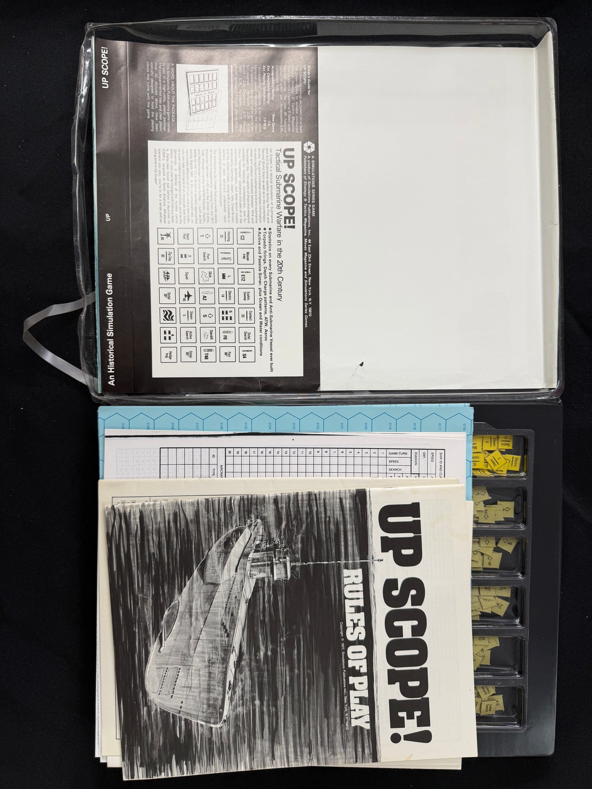 Classic SPI board game featuring tactical submarine warfare in the 20th century. Comes with instructions and pieces.