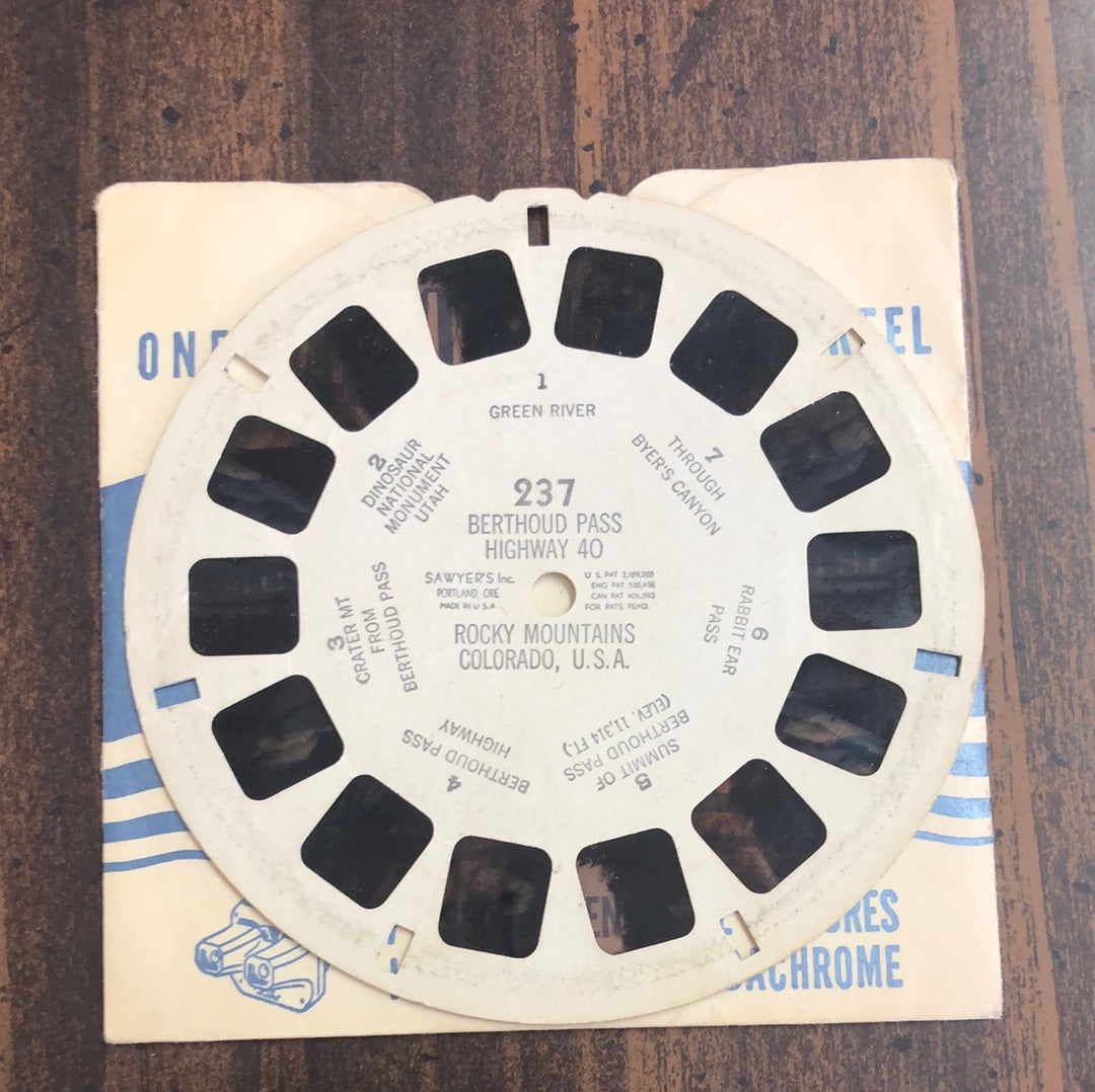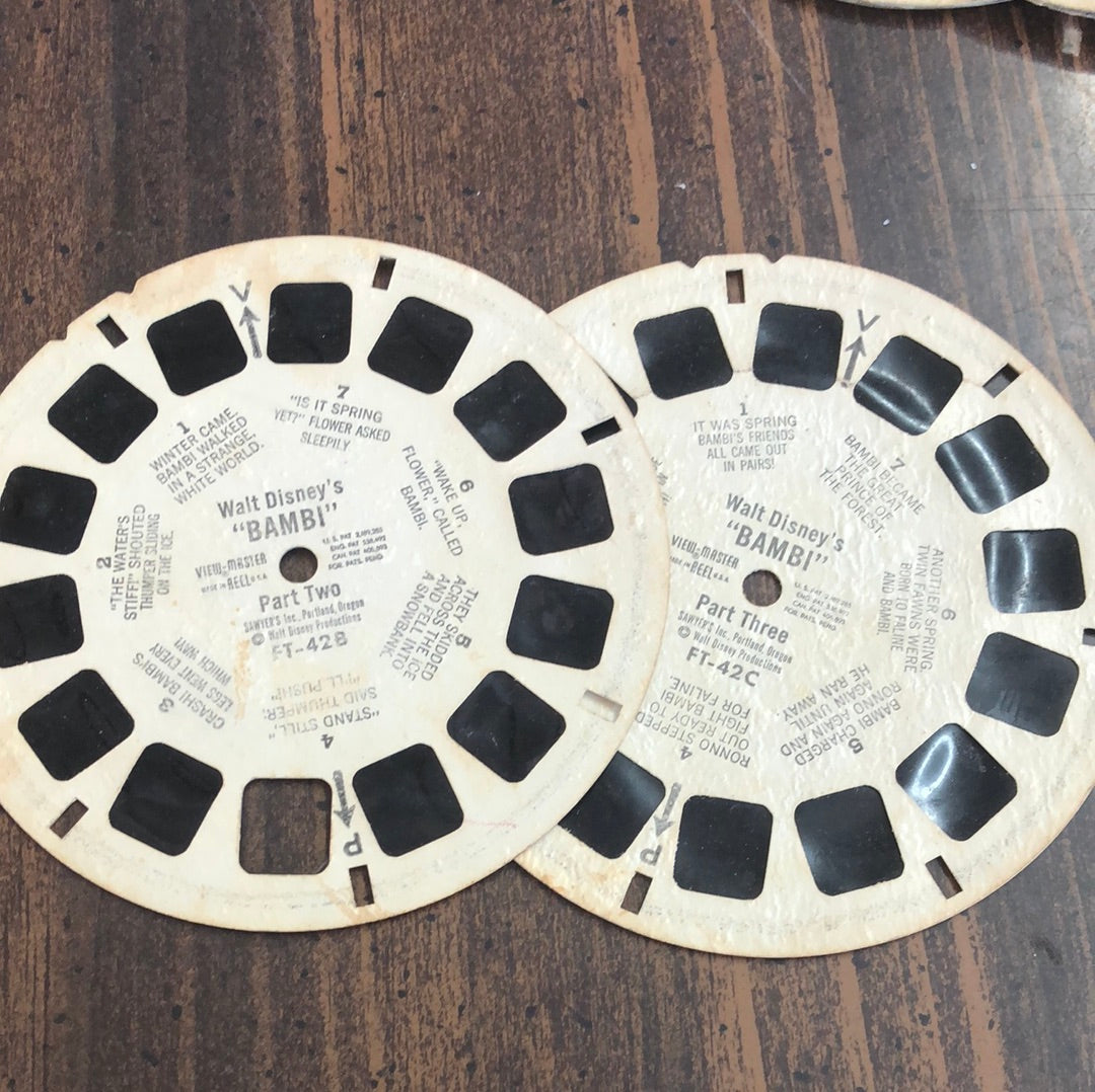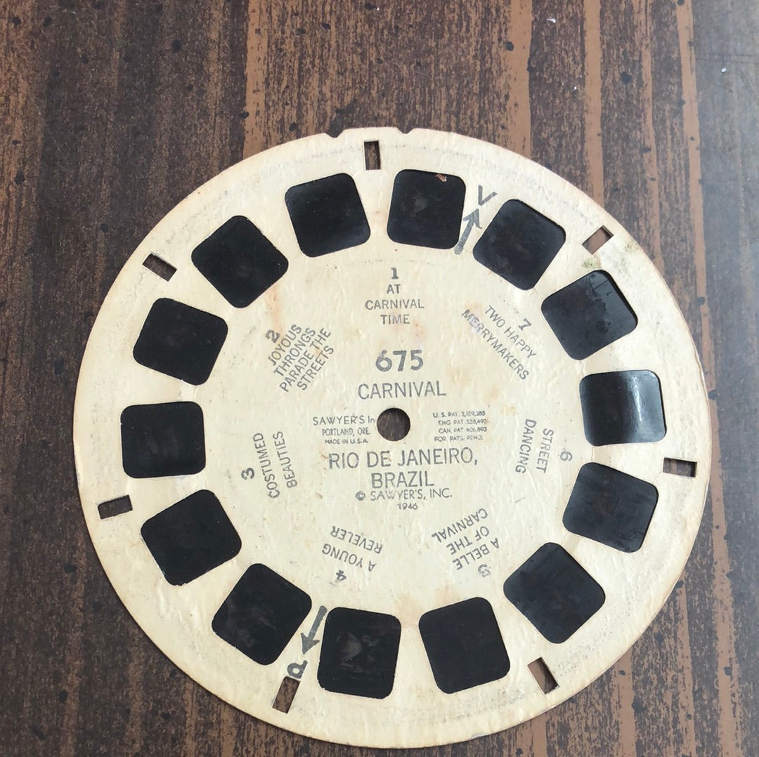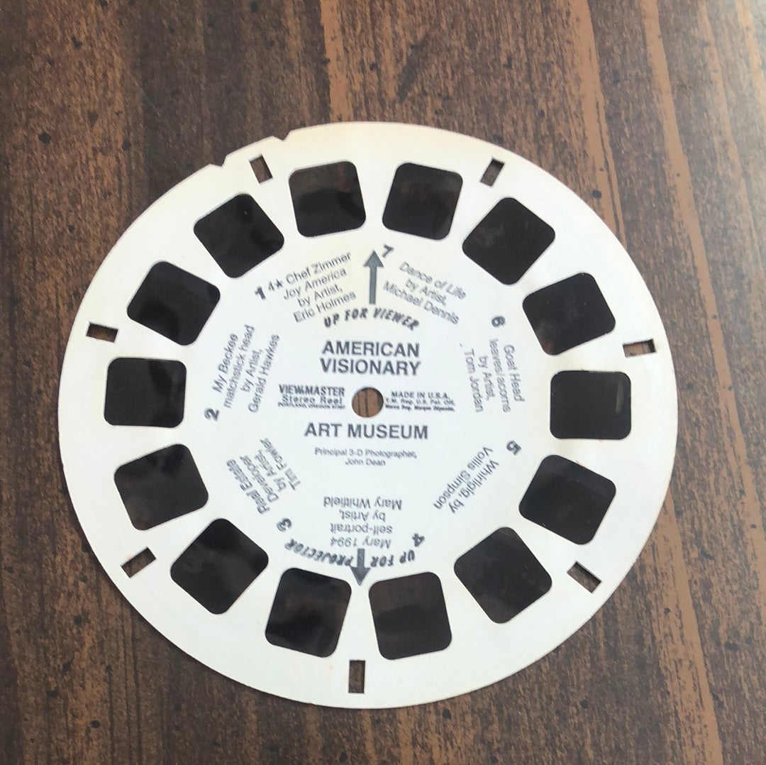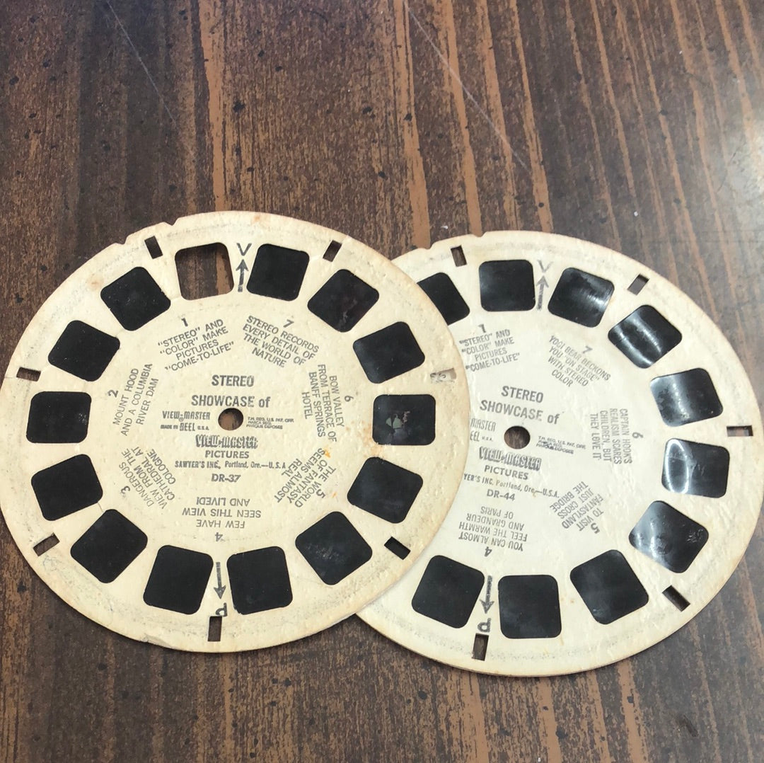 Reels: American Visionary Art Museum, 3 Discovery Channel animals, Chip and Dale in “Flying Saucer Pilots”, Yogi Bear “Patron of the Arts”, Bambi Part 2, Bambi Part 3, Aesops Fables, Huckleberry Hound Lands on the Moon, Huckleberry Hound “Project Green Thumb”, Uncle Scrooge in “Donald’s Gold Mine”, Carnival Rio de Janeiro Brazil, 2 Stereo Showcase of View-Master Pictures, The Three Little Pigs, Grand Canyon National Park South Rim, Scenic Coast of Oregon, Yellowstone National Park Old Faithful Area, Rockefeller Center NYC, San Francisco, Pike’s Peak Colorado, Berthoud Pass Rocky Mountains, Jack and the Beanstalk, and Cinderella and the Glass Slipper.