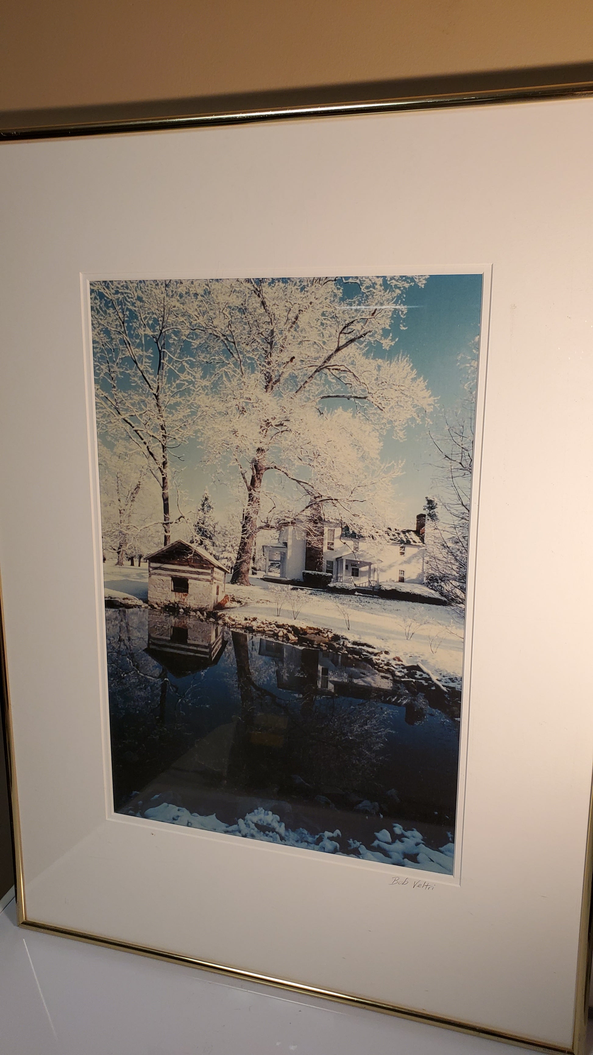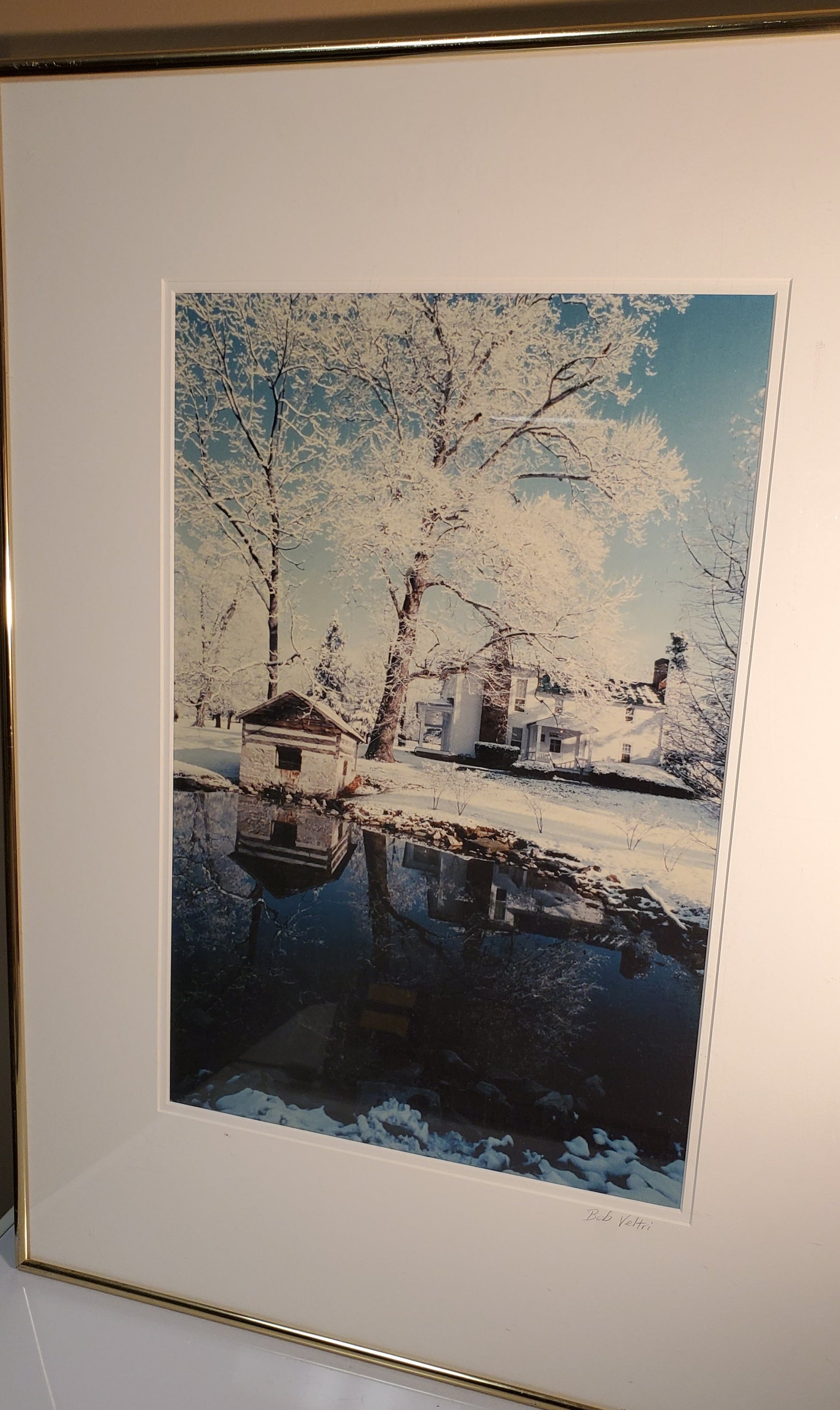 Matted and framed winter scene at Virginia Tech photograph by Bob Veltri