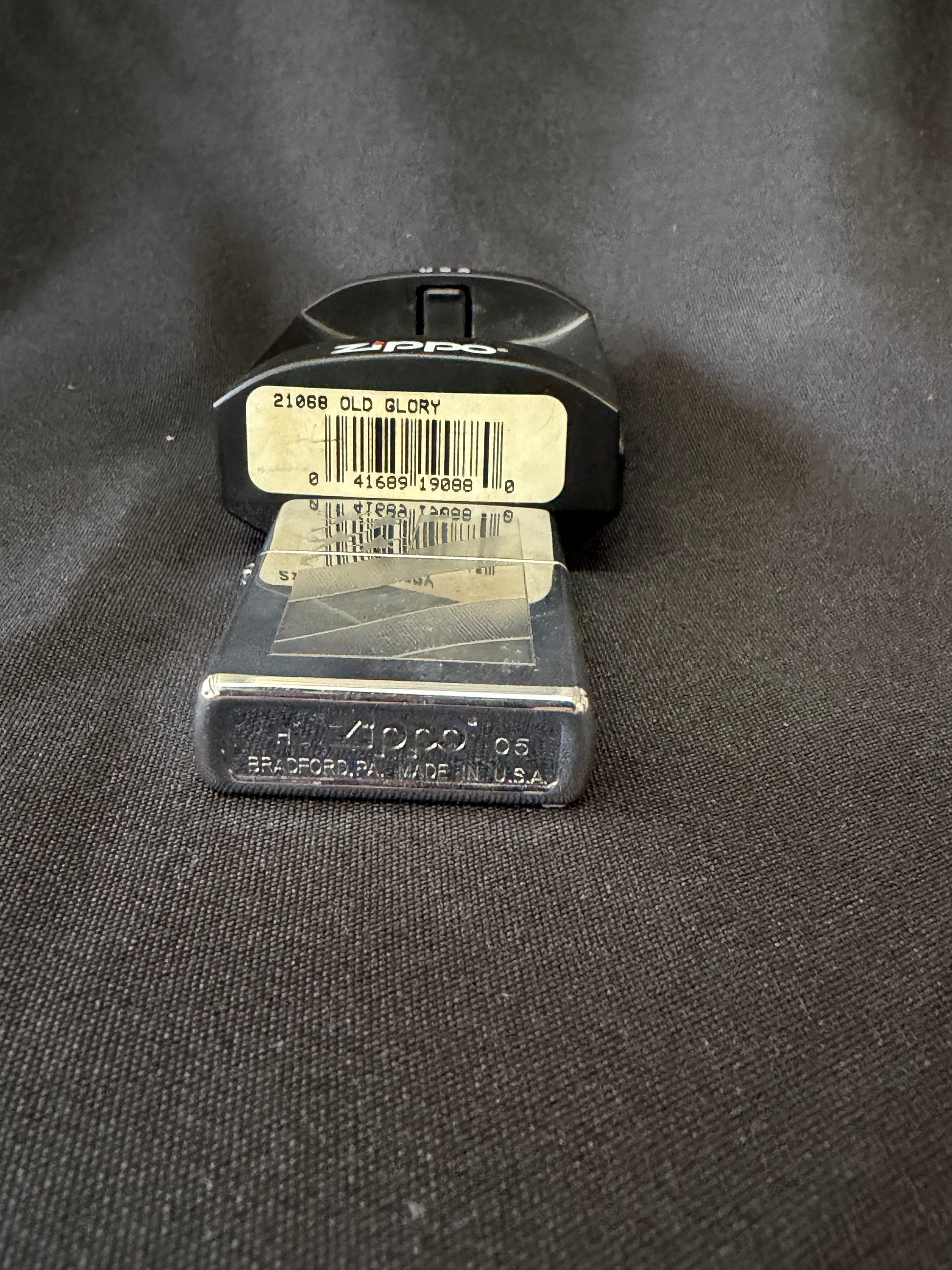 Iconic Zippo “Old Glory” lighter featuring patriotic design, classic flip-top mechanism, and reliable windproof flame. A durable, timeless collectible — great for display, gifting, or everyday use. Still in original display case.